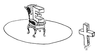 Jesus kommt im Leben dieser Person nicht vor. Dies muss nicht bedeuten, dass sie von seiner Existenz nichts weiss, oder ihn grundsätzlich ablehnt. Er hat eben keinerlei Einfluss auf ihre Überzeugungen und Entscheidungen. Die Bezeichnungen, die sich Menschen in dieser Position geben, reichen von "Ungläubiger» über "einer, der mit dem Glauben nichts am Hut hat" bis zu "Atheist". Ein Mensch, der sich so versteht, möchte sein Leben also ohne Abhängigkeit von Jesus oder auch einer anderen religiösen Instanz über sich führen. Das grosse "E' in der Mitte seines Lebens bedeutet nicht, dass er total egoistisch lebt. Er kann mit dieser Grundhaltung ohne Weiteres Hilfsbereitschaft gegenüber anderen Menschen verbinden.